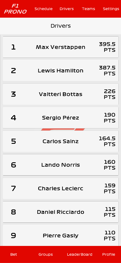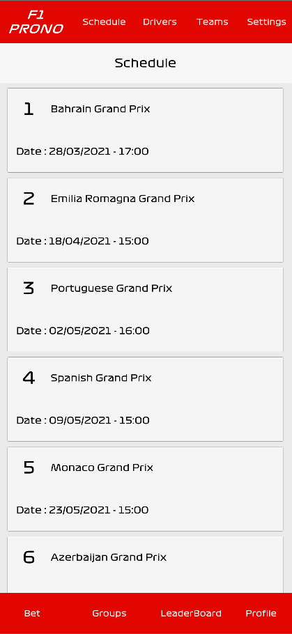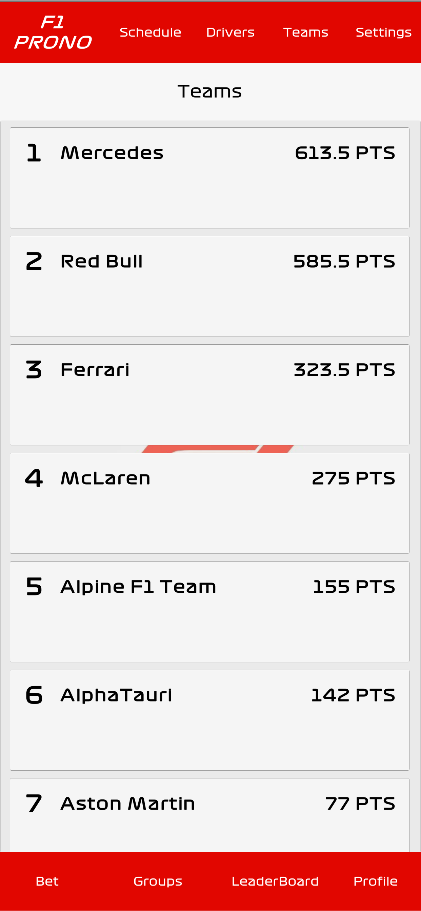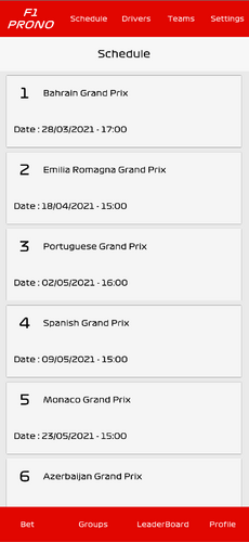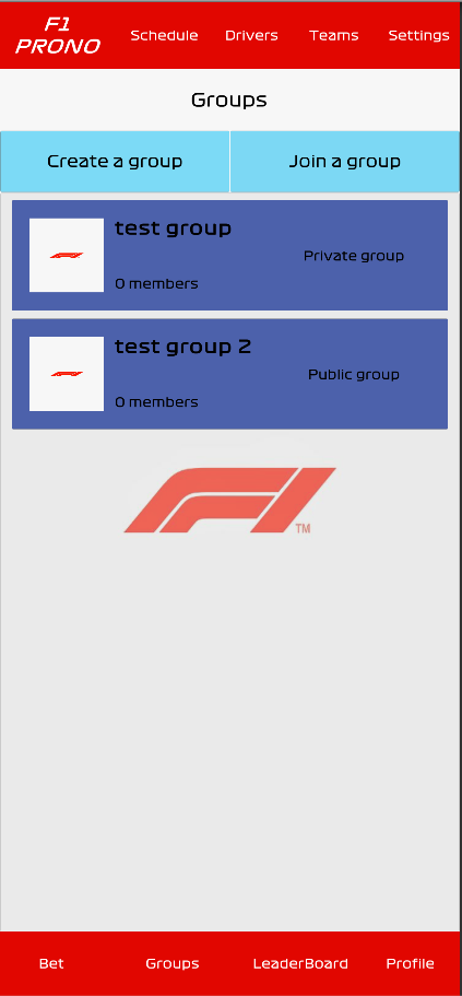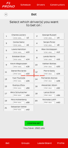 This app gives you the possibility to bet virtual points with your friends on the Formula 1 current season races.